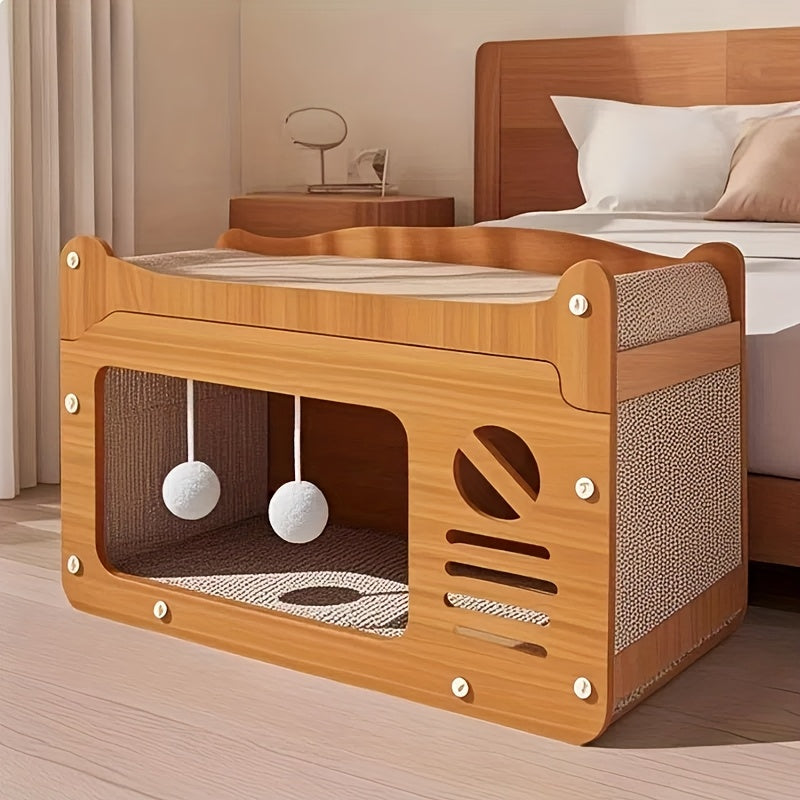 The NNETM 2-in-1 Wall Cat Bed and Scratching Post is crafted for both rest and play, making it a smart choice for indoor cats. Its space-saving wall-mounted design includes a scratchable surface and ventilation slots to keep your pet cool during warmer months. Built with durable cardboard, it offers a cozy elevated bed and an outlet for natural scratching behavior.